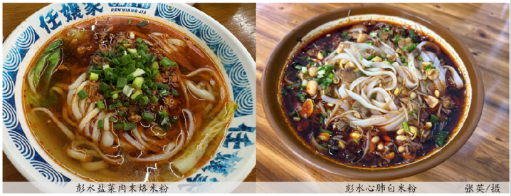 在食料搭配上,一碗彭水米粉会有三层风味:臊子、米粉、配菜。